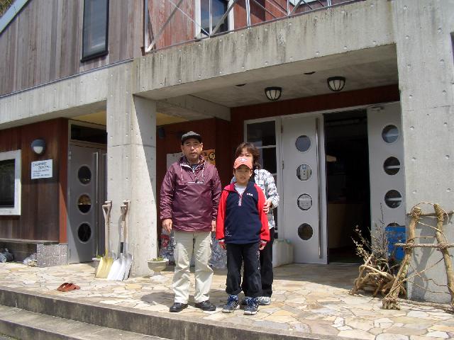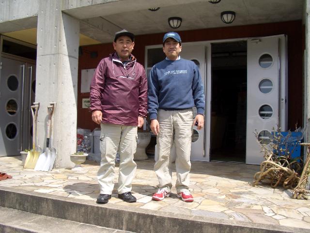 管理棟の前で