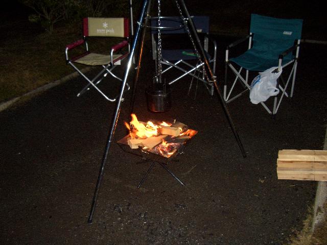 とにかく寒い夜で焚き火の傍から離れられない状態でした。熱燗で体を暖め、寝るときは湯たんぽを使いました。昼間は雨だったけど夜は晴れて星もきれいに見えました。 今回のキャンプはいろいろな事があったけどすべて良い思い出になりそうです。 娘は今回、参加しなかったけど息子の逞しい成長ぶりを見ることができました。
