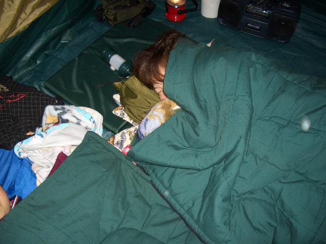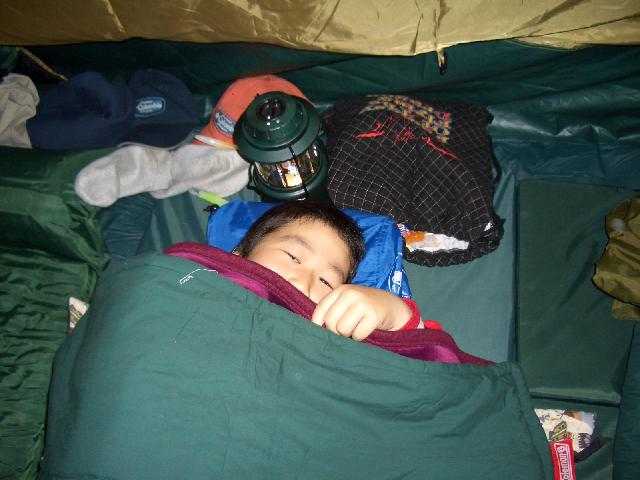 夜はとにかく寒かったので寝る時、息子にはフリースのシャツにトレーナーを着せ、さらにシュラフの中に毛布2枚に足元に湯たんぽを入れ、まさに