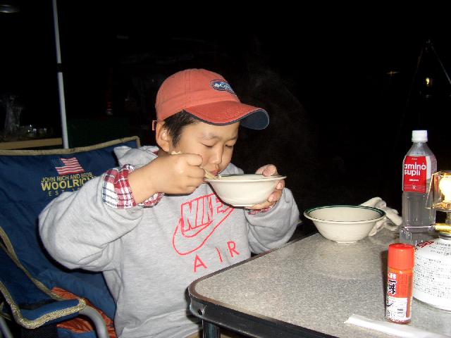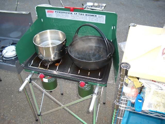 前回のアクティビティパークでカラスのおかげで食べられなかった猪鍋がメインのメニュー。 猪肉は先にさっと茹でて鍋用と焼肉用へ。